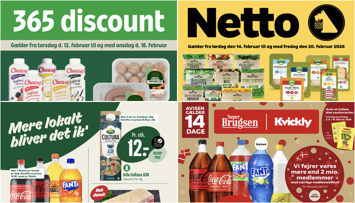 SuperBrugsen tilbyder Coca-Cola, Fanta eller Schweppes i flere varianter til en pris på kun 11 kr. pr. flaske. Flaskerne har en størrelse på 125-150 cl, og tilbuddet gælder fra fredag den 6. februar til og med torsdag den 19. februar 2026.